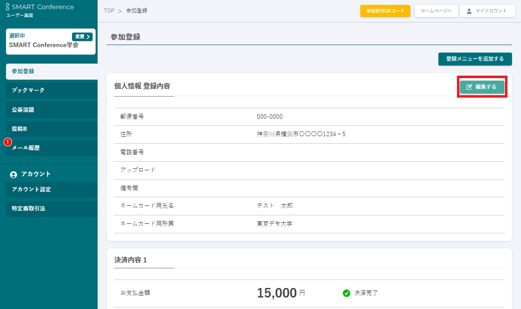 ・このページでは、参加登録時の情報の変更方法を説明します。