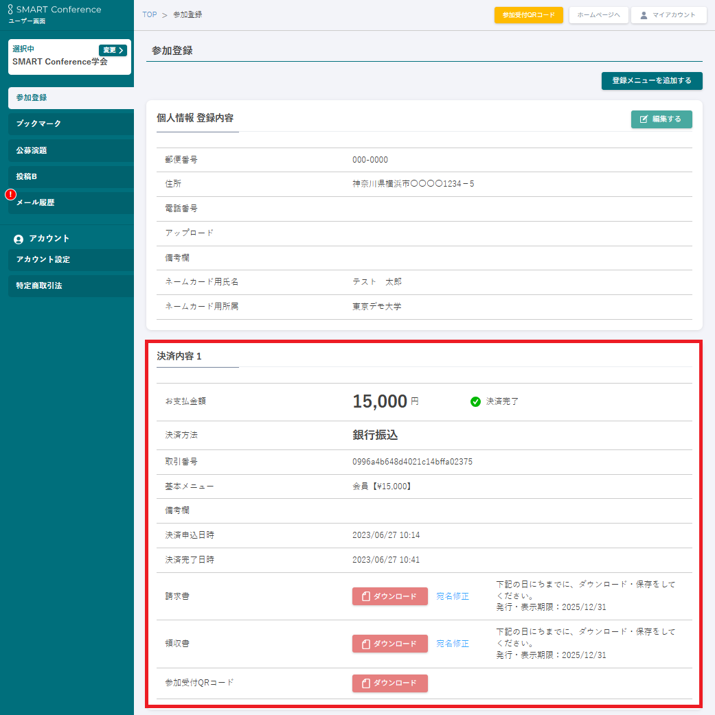 SMART Conferenceで参加登録を行い、決済後に請求書や領収書をダウンロードしたい方を対象に、操作手順を説明します。