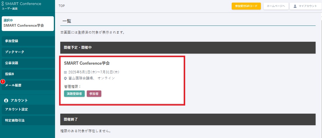 ※ネームカードを使用しない学会もございます。その場合は上記赤枠は表示されません。