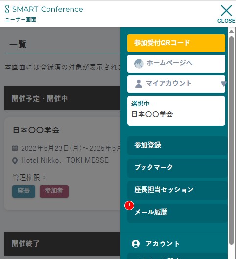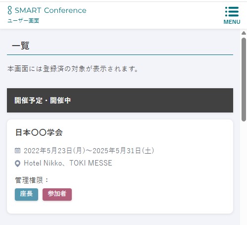 以下のQRコードを読み込むか、「SMART Conferenceユーザーログイン画面」の文字リンクをクリックすると、ログイン画面へ移動します。