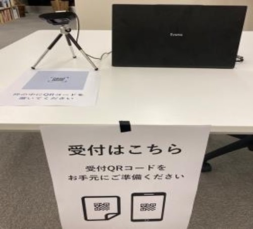 4.受付に設置のQRコード読み取り用PCの画面にQRコードを表示して、読み取りを行って下さい。