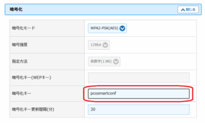 - 暗号化を開き、暗号化キーの部分に、<pcosmartconf>と入力