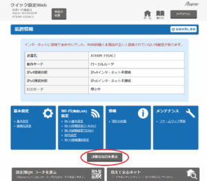 クイック設定webページを開き、ホーム画面の<詳細な項目を表示>をクリックし詳細メニューを表示させます。