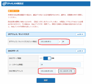 DHCP割り当てアドレス 192.168.89.101 - 192.168.89.199
