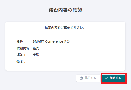 ※すでに内諾済みの場合、主催者設定により受諾回答が省略される場合があります。