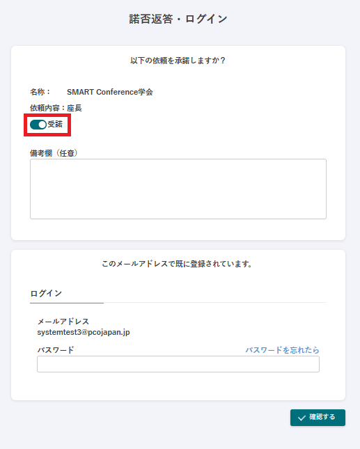 ※すでに内諾をいただいている場合、主催者側の設定により、受諾回答が省略される場合があります。
