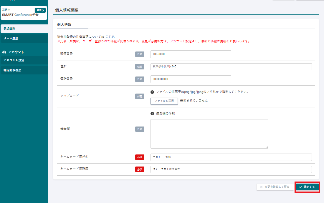 入力した情報の確認画面が表示されるので、確認してそのままでよければ「✓確定する」をクリックします。