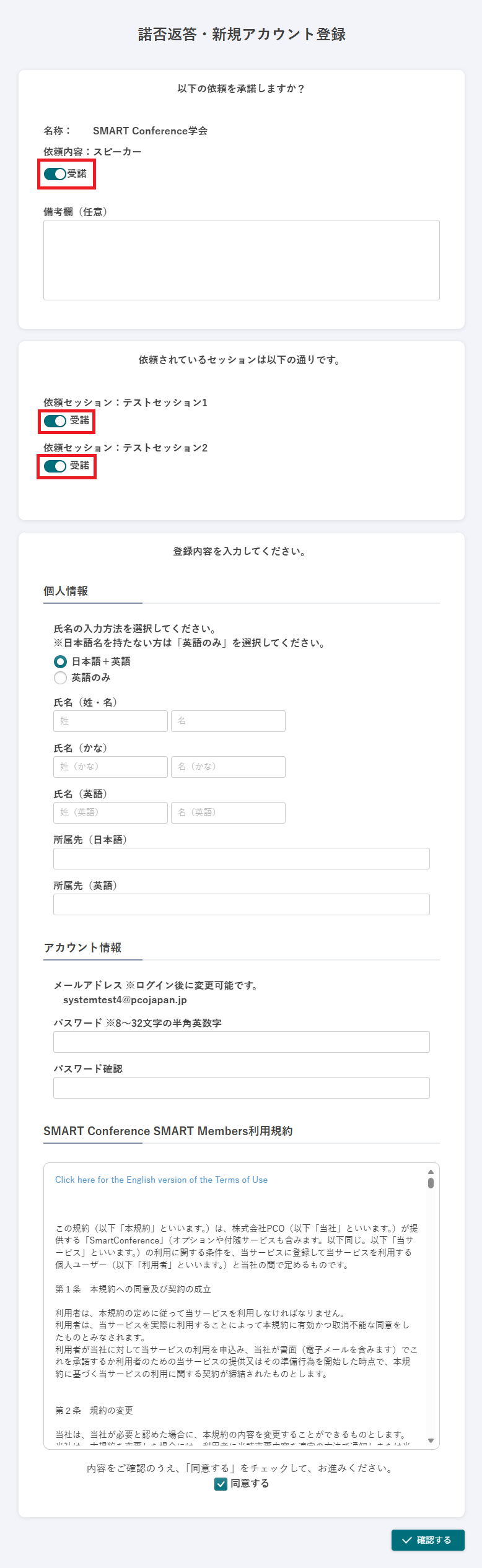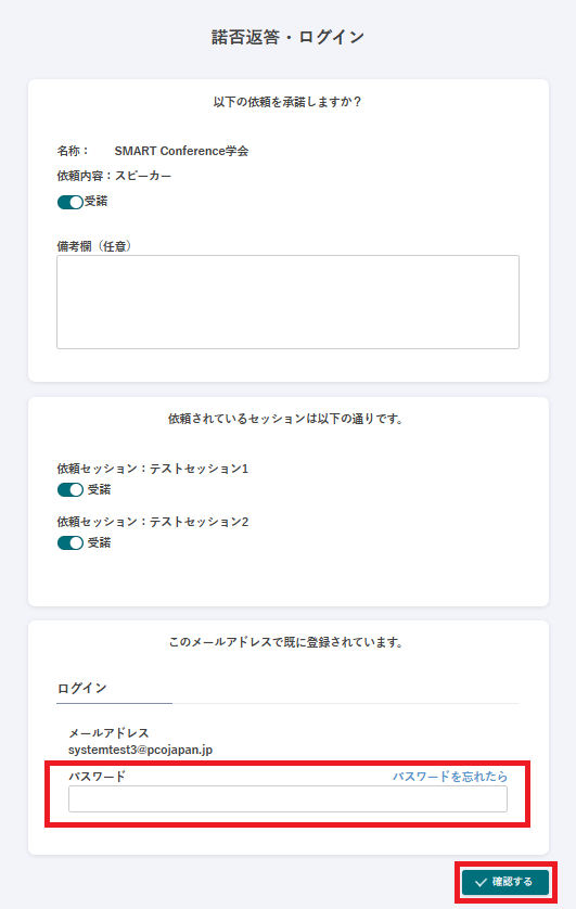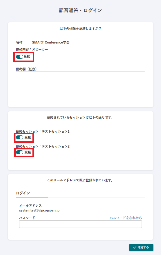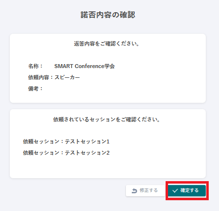※すでに内諾をいただいている場合、主催者側の設定により、受諾回答が省略される場合があります。