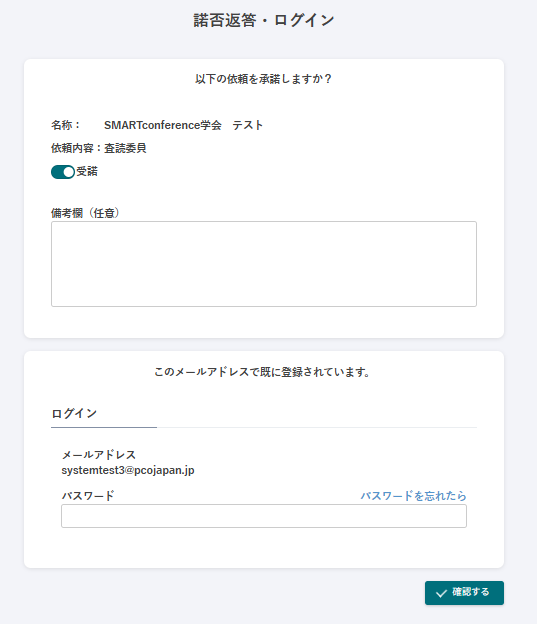 登録内容を確認後、「確定する」ボタンをクリックします。