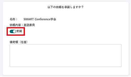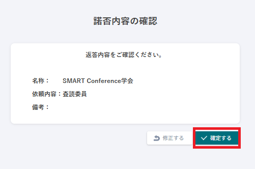 ※主催者側で「諾否回答を省略する」設定が行われていない場合は、内諾済みであっても諾否回答ボタンが表示されることがあります。